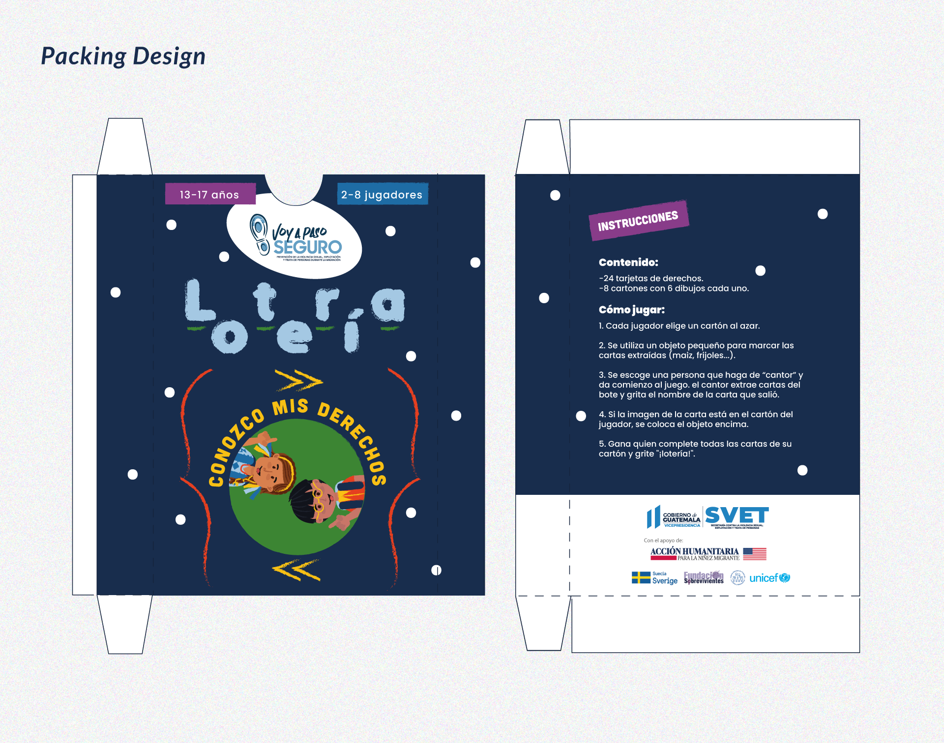 Character design for "Kids Lotto: I know my rights", a game focused on kids, and developed as part of the "Voy a paso seguro" Campaign.