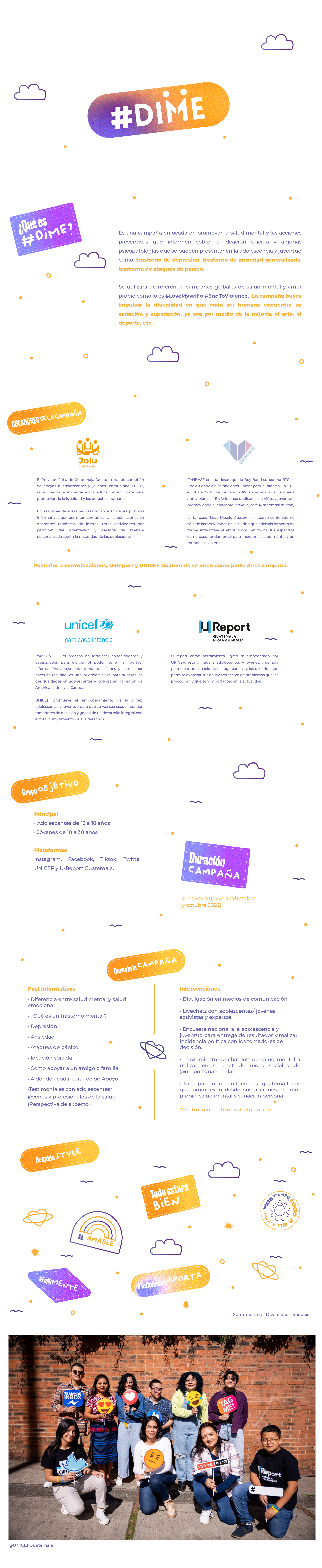 UNICEF Guatemala, U-Report Guatemala, Jolu Guatemala and the Fanbase Love Myself Guatemala launch the #DIME campaign, to help eliminate the stigma surrounding mental health and promote the well-being of girls, boys and adolescents in the country through messages of connection, communication and the importance of safe relationships that serve as support.