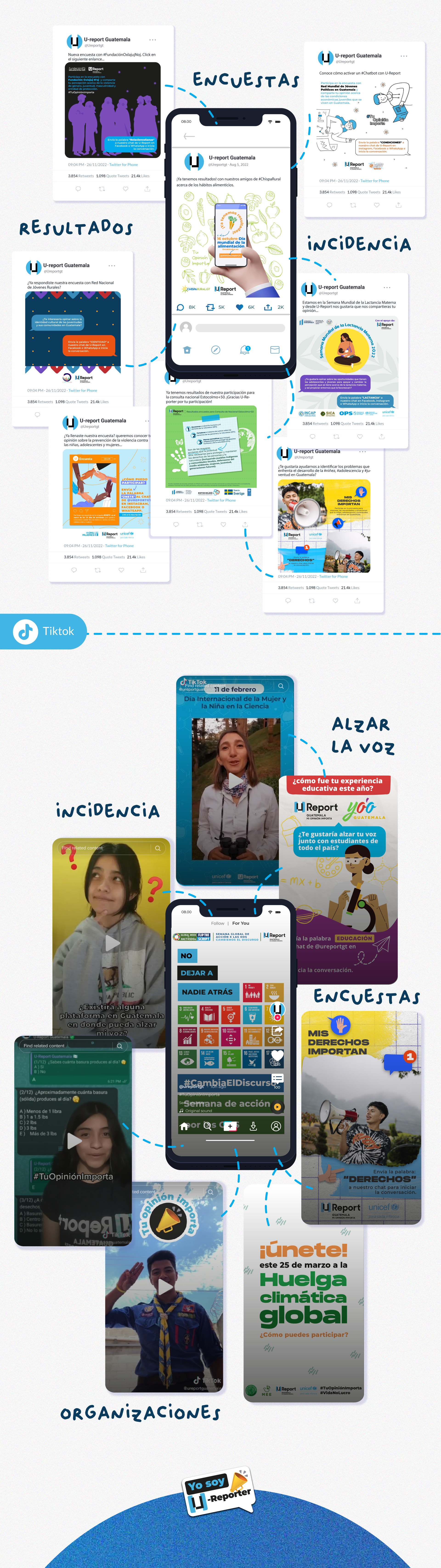 Development of content for social networks of U-Report Guatemala (Facebook, Instagram, Twitter) during the year 2022.